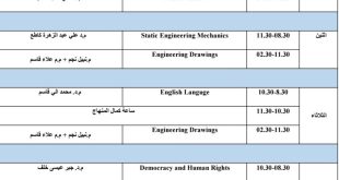 أكمل القراءة »جدول المحاضرات الأسبوعي لقسم الهندسة المدنية