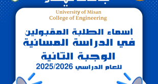 سيتم استقبال الطلبة المقبولين لغرض التسجيل اعتبارا من يوم الاحد الموافق 23/11/2025 ولغاية نهاية الدوام الرسمي ليوم الاثنين الموافق 24/11/2025 وفي حال تخلف الطلبة المقبولين (المذكورة أسمائهم في القوائم المرفقة) عن التسجيل سيتم رفع أسماء بقية الطلبة الاحتياط بالتتابع. المستمسكات المطلوبة للتسجيل: وثيقة الدراسة الإعدادية مصدقه من مديرية التربية. استمارة …