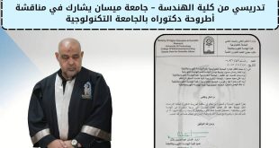 أكمل القراءة »تدريسي من كلية الهندسة – جامعة ميسان يشارك في مناقشة أطروحة دكتوراه بالجامعة التكنولوجية
