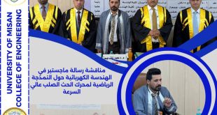 لسيد رئيس جامعة ميسان الأستاذ الدكتور عادل مانع داخل يترأس لجنة مناقشة رسالة ماجستير في الهندسة الكهربائية جامعة ميسان للباحث عبد الله مايع فزاع، الموسومة: (Mathematical Modeling of High-Speed Solid Rotor Induction Motor Based on 3D Electromagnetic Field Analysis). اجريت المناقشة يوم الاربعاء الموافق 3/9/2025 في رحاب كلية الهندسة جامعة …