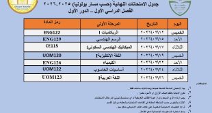 أكمل القراءة »قسم الهندسة الكهربائية: جدول الامتحانات النهائية – الفصل الدراسي الأول المرحلة الأولى (الدراسة الصباحية والمسائية)