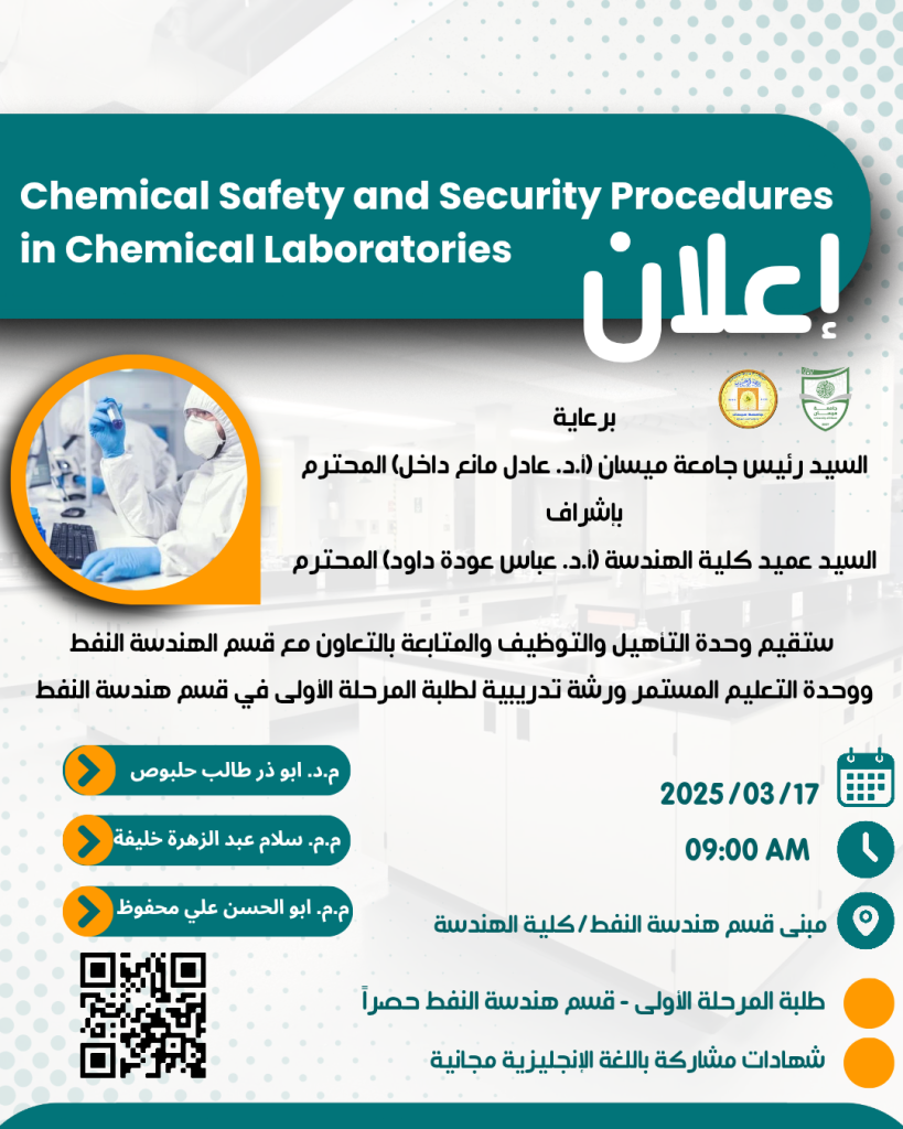 الفئة المستهدفة : طلبة المرحلة الاولى / قسم هندسة النفط حصراً.