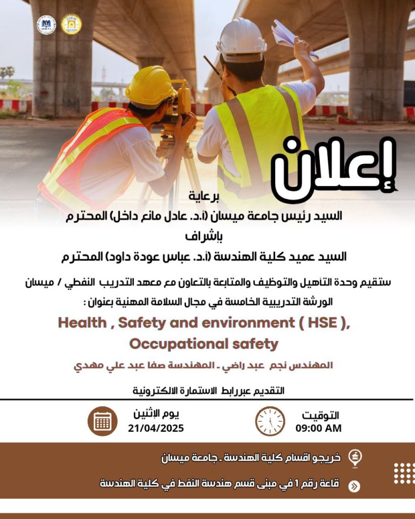 الفئة المستهدفة: خريجو أقسام كلية الهندسة – جامعة ميسان