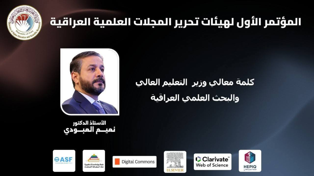 Sponsored by the Minister of Higher Education and Scientific Research, Naeem Al-Aboudi, the conference constituted a scientific platform to exchange experiences and highlight the growing role of Iraqi journals in enhancing the position of Iraqi universities at the regional and global levels.