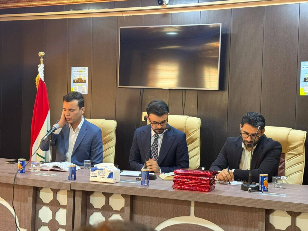 Under the patronage of Professor Adel Man’e Dakhil, President of Maysan University, the Student Activities Department at the University Presidency organized the Qur’anic Light Competition for male and female students, held in the conference hall of the Faculty of Political Science with the participation of representatives from all university’s faculties.