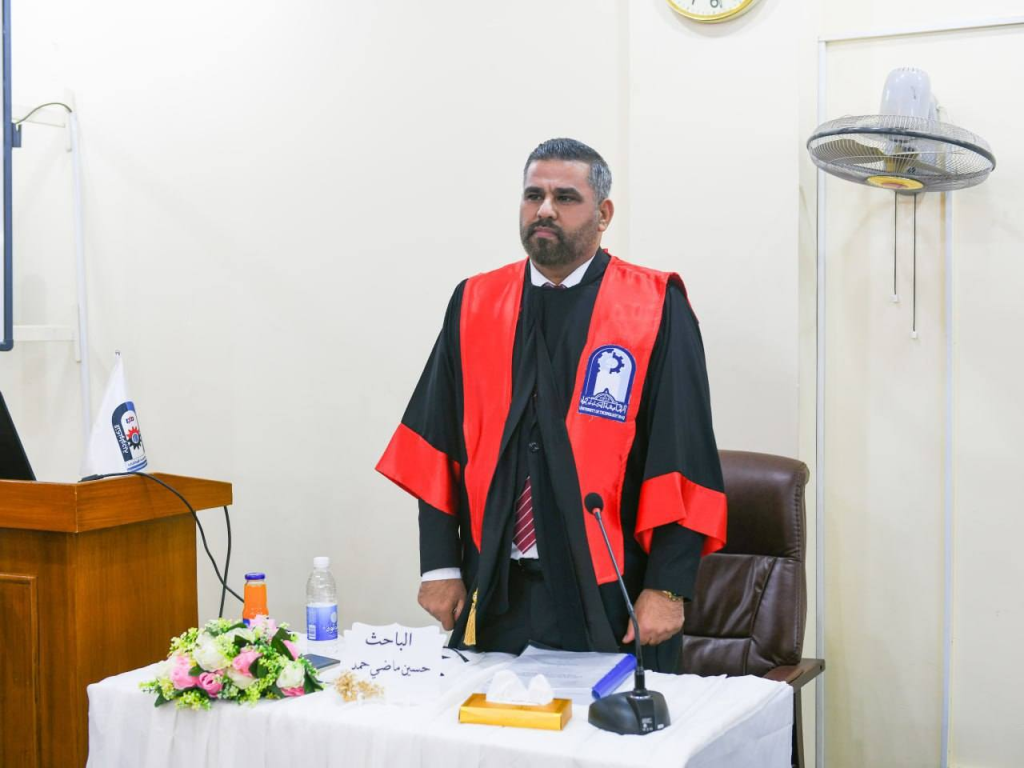 The Deanship of the Faculty of Engineering – University of Maysan extends its warmest congratulations to the doctoral researcher Hussein Madi Hamad on the occasion of the discussion of his scientific thesis, wishing him continued success in his academic and research career and further scientific contributions that support the Faculty and the university and enhance their presence in the fields of research and development.