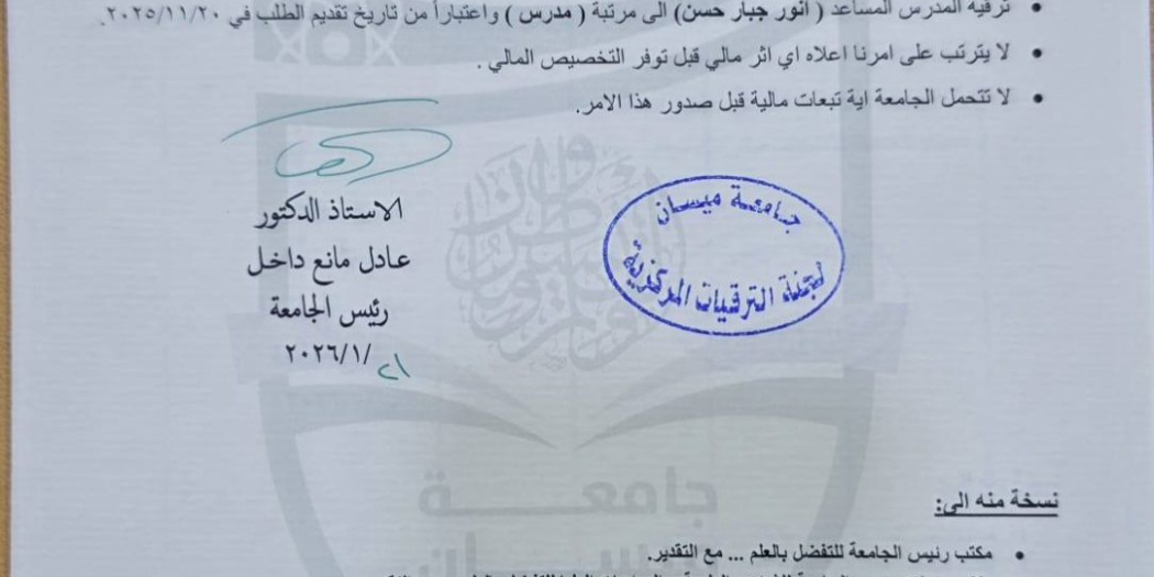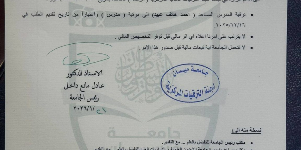 Under the patronage of the President of Maysan University, Professor Adel Mana Dakhil, and under the supervision of the Dean …