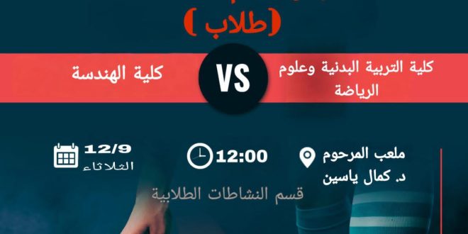 برعاية وإشراف عميد كلية الهندسة الأستاذ الدكتور عباس عوده داود، وبدعم مباشر من شعبة النشاطات الطلابية في الكلية، يواصل منتخب كلية الهندسة للطلاب تألقه في بطولة السيد رئيس جامعة ميسان لخماسي الكرة، والتي ينظّمها قسم النشاطات الطلابية في الجامعة على ملاعب كلية التربية البدنية وعلوم الرياضة.وقد قدّم منتخب كلية الهندسة …