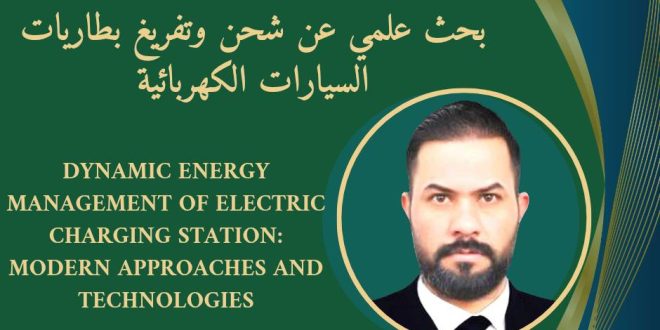 نشر المدرس المساعد علي جبر مشكل التدريسي في قسم الهندسة الكهربائية بحثه العلمي لعام 2025 والموسوم: DYNAMIC ENERGY MANAGEMENT OF ELECTRIC CHARGING STATION: MODERN APPROACHES AND TECHNOLOGIESوذلك في المجلة الروسية العالمية Smart Electrical Engineering ذات الرقم الدولي(ISSN: 2658-6754) والمصنّفة ضمن قاعدة تصنيف فاك (VAK) في روسيا الاتحادية.تناول البحث التحديات المتزايدة …