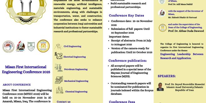 2025-11-24 أخبار الكلية, أنشطة التدريسيين, أنشطة الكلية, الأخبار الرئيسية, الفعاليات العلمية, بحوث, جامعة ميسان, مؤتمرات, مجلات, نشاطات التدريسيين