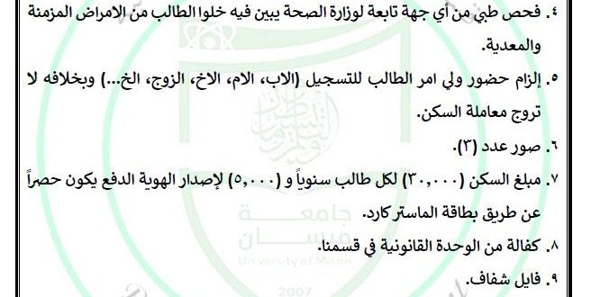 تدعوكم كلية الهندسة إلى الاطلاع على منشور قسم شؤون الأقسام الداخلية في جامعة ميسان والمتضمن تفاصيل ومتطلبات السكن في الأقسام الداخلية للعام الدراسي 2025–2026، وذلك لضمان إكمال إجراءات السكن في الوقت المحدد. التفاصيل في المنشور أدناه