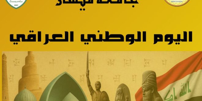 بمناسبة اليوم الوطني العراقي في الثالث من تشرين الأول من كل عام، تتقدم عمادة كلية الهندسة – جامعة ميسان بأسمى آيات التهاني والتبريكات إلى شعبنا العراقي العزيز، سائلين المولى العلي القدير أن يحفظ عراقنا الغالي ويديم عليه نعمة الأمن والاستقرار والرخاء. إن هذا اليوم هو مناسبة نستحضر فيها تاريخ العراق …