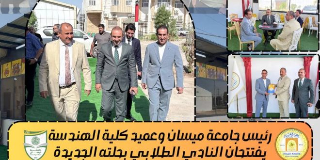 افتتح السيد رئيس جامعة ميسان الأستاذ الدكتور عادل مانع داخل، برفقة السيد عميد كلية الهندسة الأستاذ الدكتور عباس عودة داود، النادي الطلابي في كلية الهندسة بعد إعادة تأهيلها وتطويرها لتوفير أجواء مريحة وخدمات متميزة لطلبة الكلية. وقد شملت أعمال التأهيل تجديد القاعة الداخلية وتحديث الأثاث والمرافق الخدمية، إضافة إلى توفير …