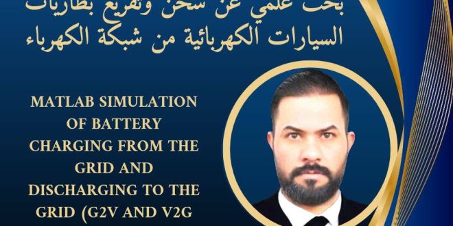 نشر المدرس المساعد علي جبر مشكل، التدريسي في قسم الهندسة الكهربائية، بحثًا علميًا حول (دائرة ماتلاب لشحن بطارية السيارة الكهربائية من الشبكة الكهربائية وتفريغها في الشبكة الكهربائية (من الشبكة للسيارة – ومن السيارة للشبكة) وذلك مع البروفيسور الروسي Б.Н. Сидоров، في مجلة (Интеллектуальная электротехника)، وهي مجلة علمية روسية محكمة تُعنى …