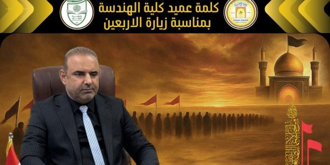 برعاية عميد كلية الهندسة الأستاذ الدكتور عباس عوده داود، نظّمت كلية الهندسة – شعبة النشاطات الطلابية، حملة تطوعية شارك فيها عدد من أساتذة وموظفي الكلية، لتوزيع المياه والمرطبات والعصائر على المواكب الخدمية في طريق الزائرين السائرين على الأقدام نحو كربلاء المقدسة لإحياء أربعينية الإمام الحسين (عليه السلام). وفي تصريح له، …