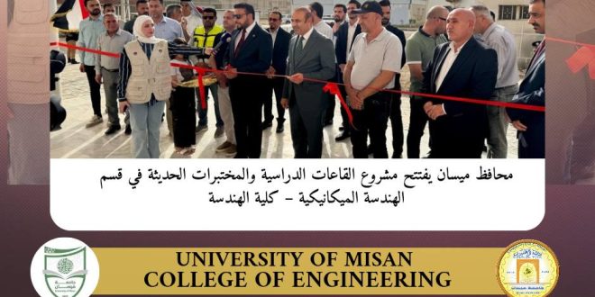 افتتح السيد محافظ ميسان الأستاذ حبيب ظاهر الفرطوسي بحضور السيد عميد كلية الهندسة الاستاذ الدكتور عباس عودة داود، مشروع إنشاء قاعات ومختبرات قسم الهندسة الميكانيكية – كلية الهندسة، وذلك ضمن تخصيصات محافظة ميسان والتي تعكس خطط المحافظة بدعم وتطوير قطاع التعليم العالي وتعزيز البنى التحتية الجامعية. وشهد حفل الافتتاح حضور …