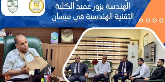 زار السيد عميد كلية الهندسة، الأستاذ الدكتور عباس عودة داود، يرافقه وفد من كلية الهندسة ضم الاستاذ الدكتور احمد كاظم الشرع والدكتور محمود شاكر محمود رئيس قسم الهندسة الميكانيكية، عمادة الكلية التقنية الهندسية في ميسان، ولقاء السيد عميد الكلية الأستاذ الدكتور محمود عزيز، في مكتبه، وذلك بعد مباشرته بالدوام عقب …