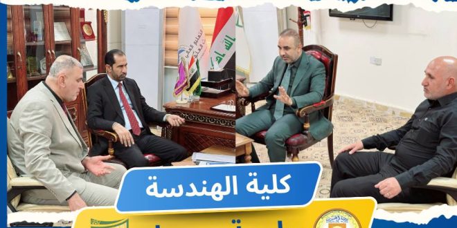 استقبل الأستاذ الدكتور عباس عودة داود، عميد كلية الهندسة في جامعة ميسان بمكتبه يوم الخميس المصادف ٢٠/٣/٢٠٢٥ ،الاستاذ المساعد الدكتور محمد جبار تويه المساعد الإداري لرئيس الجامعة، برفقة المدرس المساعد راجح حربي خضير، مدير قسم الإعمار والمشاريع ، وذلك في إطار متابعة المشاريع التابعة لكلية الهندسة. وخلال اللقاء، جرت مناقشة …