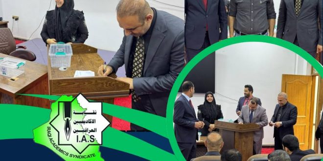 في إطار تعزيز دور الأكاديميين في العمل النقابي وترسيخ مبدأ التمثيل الفاعل داخل المؤسسات التعليمية، شارك أعضاء الهيئة التدريسية في كلية الهندسة بجامعة ميسان في انتخابات ممثل نقابة الأكاديميين لمجمع الكليات العلمية، التي أُجريت يوم الأحد الموافق 23 آذار 2025، في رحاب كلية الطب – جامعة ميسان. وشهدت العملية الانتخابية …