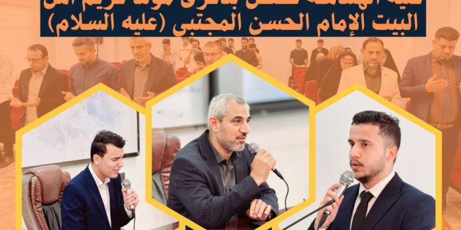 بمناسبة الذكرى العطرة لمولد كريم أهل البيت، الإمام الحسن بن علي بن أبي طالب (عليه السلام)، أقام قسم الهندسة المدنية بالتعاون مع وحدة الأنشطة الطلابية في كلية الهندسة، احتفالًا بهيجًا بهذه المناسبة المباركة. استُهل الحفل بتلاوة آياتٍ من الذكر الحكيم تلاها الطالب القارئ أحمد الجزائري، ثم قرأ الحضور سورة الفاتحة …