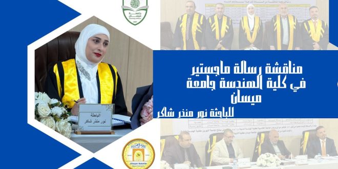 تمت مناقشة رسالة الماجستير للطالبة نور منذر شاكر في قسم الهندسة المدنية بكلية الهندسة / جامعة ميسان، الموسومة بــ (سلوك الانحناء للجسور الخرسانية الجيوبوليميرية متضمنة نفايات PET البلاستيكية)، وذلك يوم الخميس الموافق 30 كانون الثاني 2025 في قاعة الدراسات العليا بالكلية. تألفت لجنة المناقشة من الأساتذة:• أ.د سعد فهد رسن …