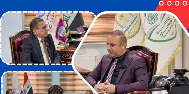 التقى الأستاذ الدكتور عباس عودة داود، عميد كلية الهندسة بجامعة ميسان بمراسل قناة العهد الفضائية، الأستاذ حيدر الحسيني، حيث تناول اللقاء دور الكلية في استقطاب الطلبة الدوليين ضمن برنامج ((ادرس في العراق))، الذي أطلقته وزارة التعليم العالي والبحث العلمي. وأكد السيد العميد، خلال حديثه، التزام الكلية بتوفير بيئة أكاديمية داعمة …