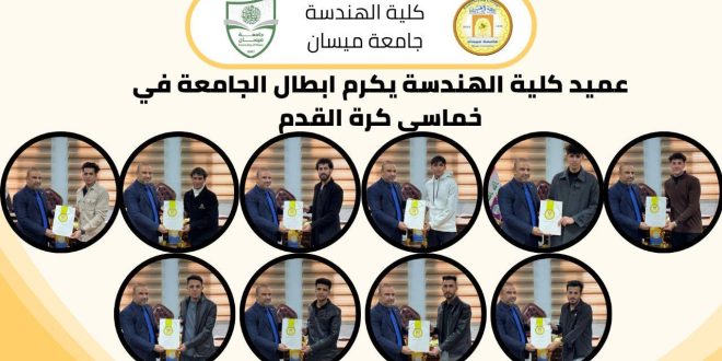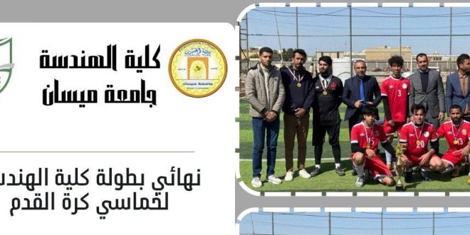 برعاية الأستاذ الدكتور عباس عوده داود، عميد كلية الهندسة، اختتمت وحدة الأنشطة الطلابية في الكلية بطولة خماسي كرة القدم لطلبة الكلية، حيث شهدت المباراة النهائية مواجهة مثيرة بين فريق المرحلة الرابعة من قسم الهندسة الميكانيكية وفريق المرحلة الثانية من قسم الهندسة الكهربائية، وانتهت بفوز فريق الهندسة الميكانيكية الذي توّج بلقب …