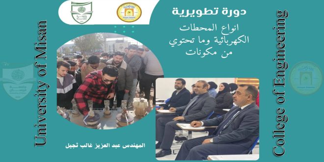 برعاية السيد رئيس جامعة ميسان الأستاذ الدكتور عادل مانع داخل، وبإشراف السيد عميد كلية الهندسة الأستاذ الدكتور عباس عودة داود، أقامت وحدة التأهيل والتوظيف والمتابعة في كلية الهندسة دورة تطويرية بعنوان:(انواع المحطات الكهربائية وما تحتوي من مكونات)وقد حاضر فيها المهندس عبد العزيز غالب ثجيل المتخصص في مجال القدرة الكهربائية، واستهدفت …