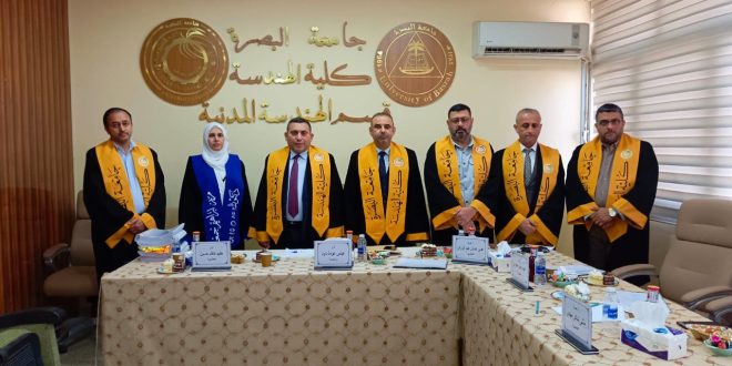 ترأس الأستاذ الدكتور عباس عودة داود، عميد كلية الهندسة بجامعة ميسان، لجنة مناقشة أطروحة الدكتوراه لطالبة الدكتوراه مريم إبراهيم جمعة في قسم الهندسة المدنية في كلية الهندسة بجامعة البصرة. و الموسومةExploring the Behavior of Composite Concrete – Corrugated Steel Webs Box Beams وضمت لجنة المناقشة كلاً من: الأستاذ الدكتور عباس …