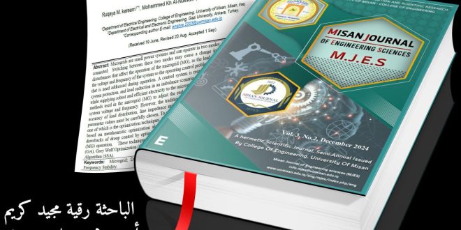 في إطار الجهود المبذولة لدعم خارطة الطريق التي وضعتها وزارة التعليم العالي والبحث العلمي بهدف تعزيز مكانة المجلات العلمية العراقية على المستوى الدولي ورفع كفاءة البحث العلمي، تم نشر بحث علمي بعنوان:(Optimal Operation of Droop Control in Microgrids Using Different Techniques Optimization: Review)البحث تم نشره في العدد الثاني من مجلة …