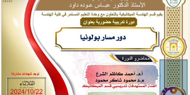 أكمل القراءة »eng_admin 2024-10-20 أنشطة التدريسيين, الفعاليات العلمية, دورات التعليقات على “أعلان دورة تدريبية” مغلقة 515