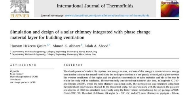 نشر بحث علمي مشترك لتدريسي من كلية الهندسة في مجلة عالمية رصينة