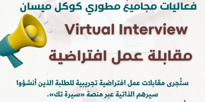 اعلانبرعايةالسيد رئيس جامعة ميسان (أ.د. عادل مانع داخل) المحترمبإشرافالسيد عميد كلية الهندسة (أ.د. عباس عوده داود) المحترمضمن فعاليات أسبوع الريادة في كلية الهندسةفعاليات مجاميع مطوري كوكل ميسانVirtual Interviewمقابلة عمل افتراضيةستُجرى مقابلات عمل افتراضية تجريبية للطلبة الذين أنشأوا سيرهم الذاتية عبر منصة (سيرة تك).تُدار المقابلات من قبل مسؤول موارد بشرية من …