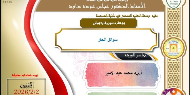 برعاية السيد رئيس جامعة ميسان الأستاذ الدكتور عادل مانع داخل، وبإشراف السيد عميد كلية الهندسة الأستاذ الدكتور عباس عوده داود، نظّمت وحدة التعليم المستمر بالتعاون مع قسم هندسة النفط في كلية الهندسة- جامعة ميسان ورشة تدريبية حضورية بعنوان:(سوائل الحفر في الصناعات النفطية)وقد حاضر في الورشة الأستاذ المساعد الدكتور محمد عبد …