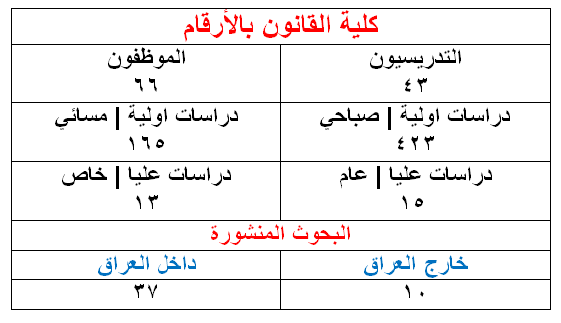 | التدريسيون | الموظفون | الدراسات الأولية صباحي | الدراسات الأولية مسائي | |