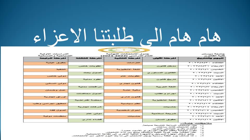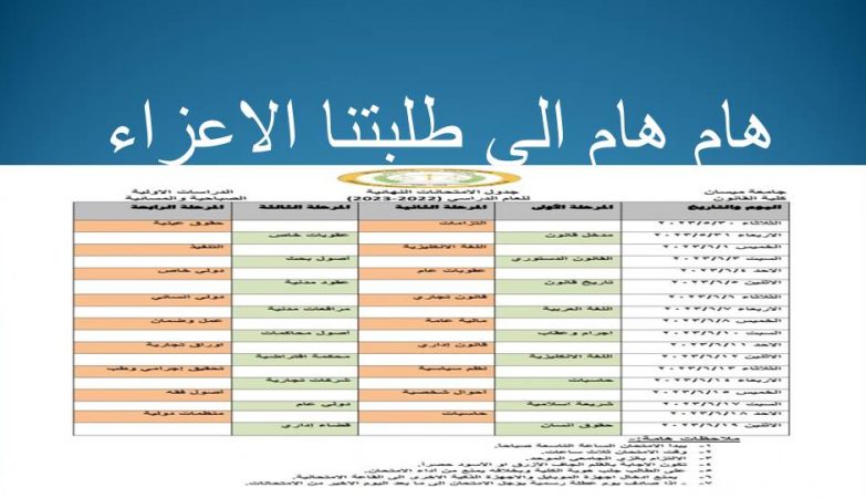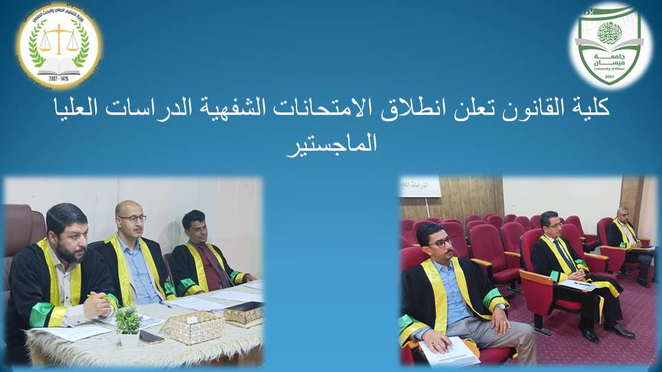 تعلن كلية القانون /جامعة ميسان عن بدء الامتحانات الشفهية لطلبة الدراسات العليا. الفصل الثاني .…