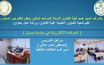 برعاية كلية القانون_ جامعة ميسان وبالتعاون مع هيئة إنتداب محاميّ ميسان تقيم لجنة منظمات المجتمع المدني و التدريب و التطوير، دورة تدريبية حول دور المرأة العاملة في بناء المجتمع المعاصر و التحديات.