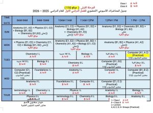 جدول محاضرات المرحلة الاولى للعام الدراسي 2025-2026