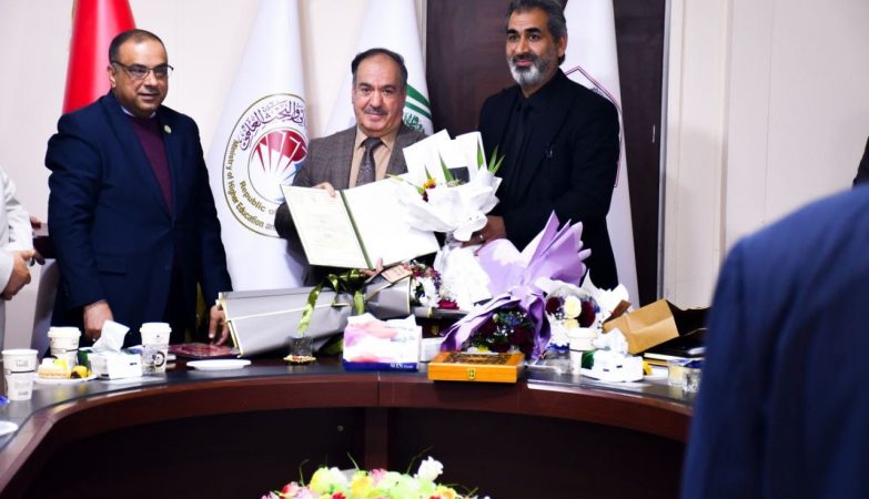 وزير التعليم العالي والبحث العلمي يمنح كتاب شكر وتقدير الى عميد كلية التمريض