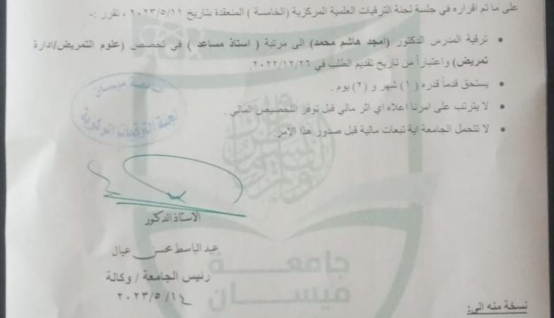 كلية التمريض بجامعة ميسان تعلن جاهزيتها بعد استكمال إدخال بيانات الطلبة على نظام الـ SIS…