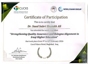 تدريسي من كلية التمريض جامعة ميسان يشارك في ورشة بعنوان (موائمة مسار بولونيا مسار بولونيا مع نظام التعليم في الجامعات العراقية )
