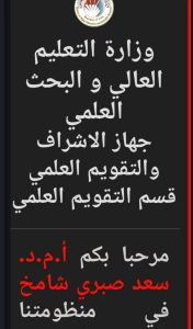 اختيار ا .م .د سعد صبري شامخ التدريسي بكلية التمريض كمقيم علمي منظومة الخبرة العلمية التي أطلقتها وزارة التعليم العالي والبحث العلمي جهاز الاشراف والتقويم العلمي من خلال الاعتماد على المنظومة الالكترونية في تقيم الرسائل والاطاريح الجامعية لطلبة الدراسات العليا وحسب خطط الوزارة في ترصين البحث العلمي