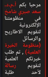 تدريسي من كلية التمريض جامعة ميسان مقوماً علمياً في منظومة الخبره العلمية الالكترونية