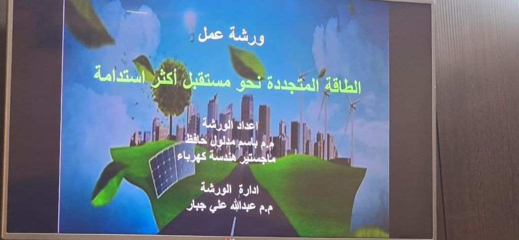 قدّم الورشة المهندس الكهربائي م.م باسم مدلول حافظ، مستعرضًا الجوانب التقنية والعلمية للطاقة المتجددة، وأهميتها في تحقيق الأمن البيئي والاقتصادي.