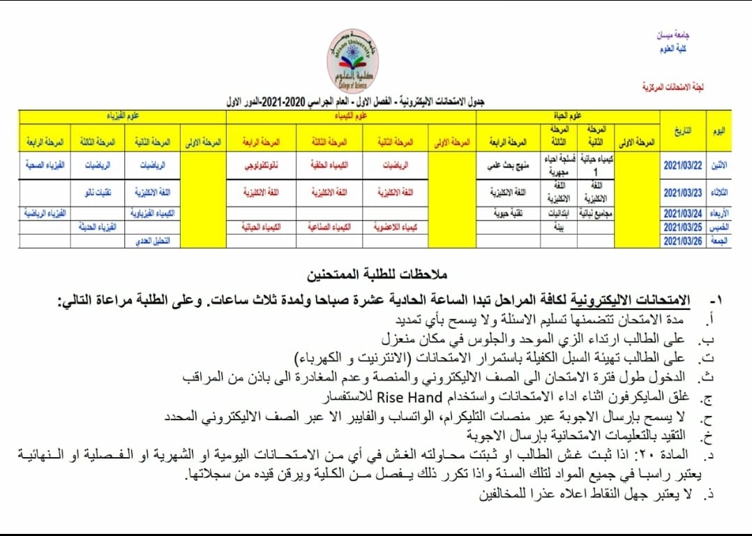 التعليمات الامتحانية