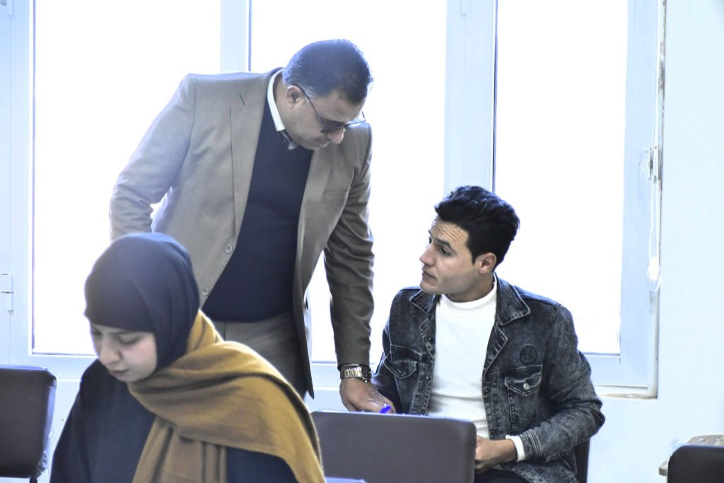 وقد أجرى السيد معاون العميد للشؤون العلمية الأستاذ المساعد الدكتور صلاح حسن فرج جولة تفقدية للقاعات الامتحانية للاطلاع على انسيابية سير الامتحانات والوقوف على جاهزية القاعات .
