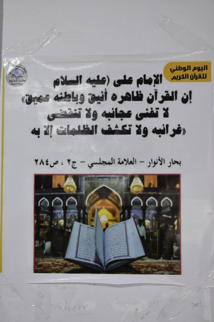 وتضمنت البوسترات آيات قرآنية كريمة ورسائل هادفة تؤكد دور القرآن الكريم في بناء الفرد والمجتمع، وتسهم في تعزيز مبادئ التسامح والعلم والعمل الصالح، في أجواء تعكس الاهتمام بالهوية الدينية والثقافية.