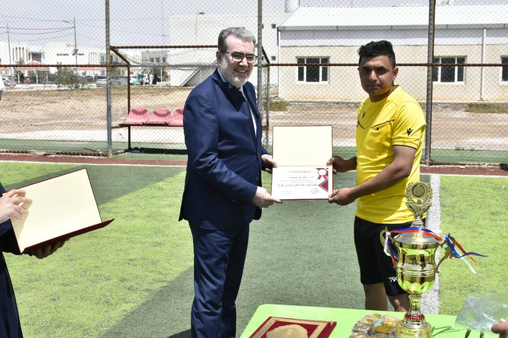 برعاية السيد عميد كلية العلوم الأستاذ الدكتور تحسين صدام فندي، وبإشراف وتنظيم شعبة الأنشطة الطلابية، اختُتمت بطولة كأس كلية العلوم التي أُقيمت بين فريق قسم الفيزياء – المرحلة الثالثة (الدراسة الصباحية) وفريق قسم علوم الحياة – المرحلة الرابعة (الدراسة المسائية)، وسط أجواء تنافسية مميزة عكست روح الأخوة واللعب النظيف بين طلبة الكلية.