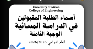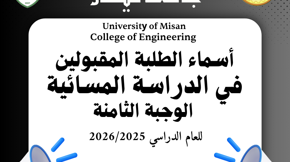 أسماء الطلبة المقبولين للدراسة المسائية الوجبة الثامنة في كلية الهندسة للعام الدراسي 2025-2026