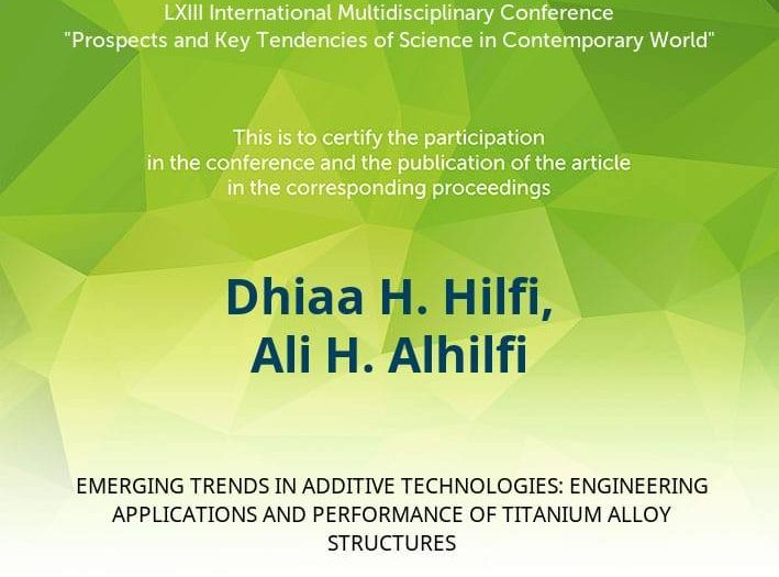تدريسية من كلية الهندسة ضمن فريق بحثي دولي ينجز بحثا علميا في مجلة عالمية رصينة ضمن الربع الأول من مستوعبات سكوبس وكلارفيت